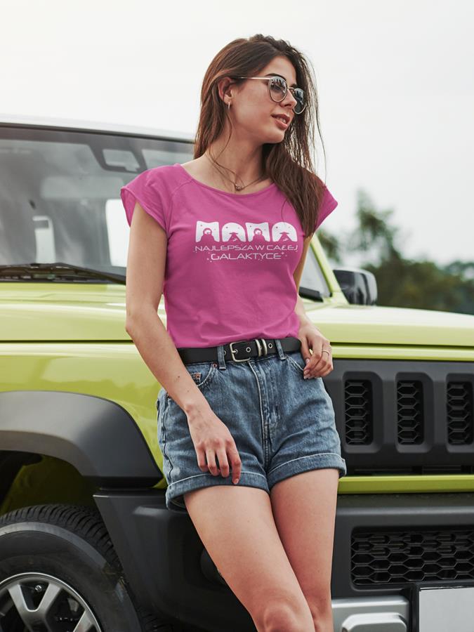 Koszulka dla Mamy i Taty na Dzień Matki i Ojca z napisem Mama najlepsza w całej galaktyce i Tata najlepszy w całej galaktyce w kolorze różowym i niebieskim