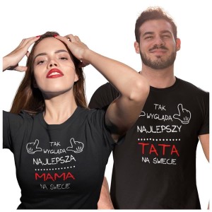 Koszulki z napisem "Tak wygląda najlepsza mama na świecie" i "Tak wygląda najlepszy tata na świecie".