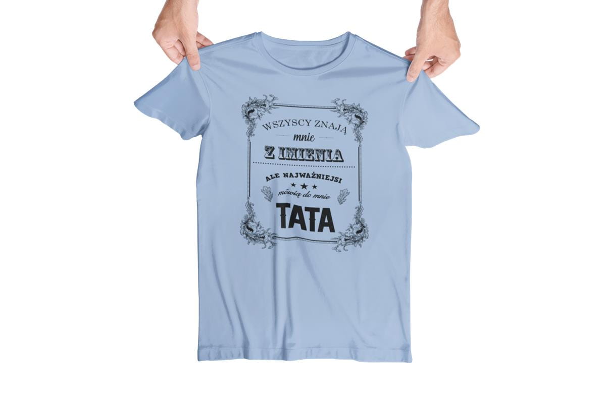 Koszulka dla Mamy i Taty na Dzień Matki i Ojca z napisem Wszyscy znają mnie z imienia ale najważniejsi mówią do mnie mama i Wszyscy znają mnie z imienia ale najważniejsi mówią do mnie tata w kolorze różowym i błękitnym