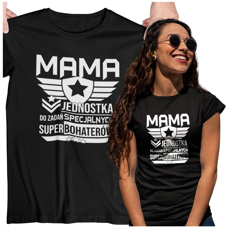 Koszulka z napisem "Mama jednostka do zadań specjalnych super bohaterów"