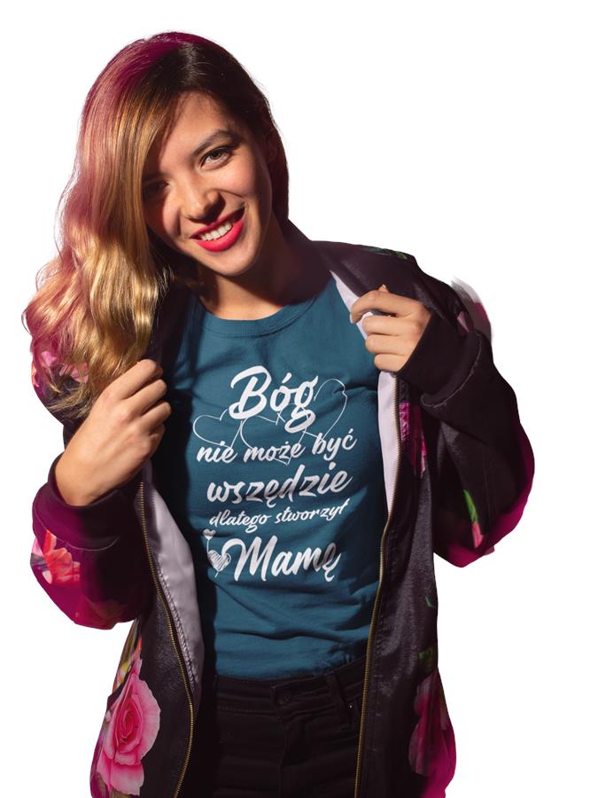 Koszulka dla Mamy na Dzień Mamy prezent Bóg nie może być wszędzie, dlatego stworzył MAMĘ koszulka petrol blue