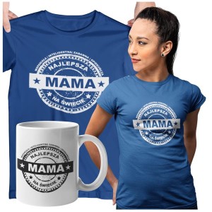 Koszulka dla Mamy na Dzień Mamy prezent z kubkiem i napisem Najlepsza mama na świecie, wspaniała, inteligentna, zabawna, opiekuńcza granatowa