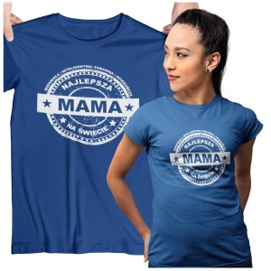 Koszulka dla Mamy na Dzień Mamy prezent z napisem Najlepsza mama na świecie, wspaniała, inteligentna, zabawna, opiekuńcza granatowa