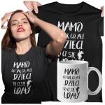Koszulka dla Mamy na Dzień Mamy z kubkiem prezent z napisem MAMO co jak co, ale dzieci to Ci się udały kolor czarny