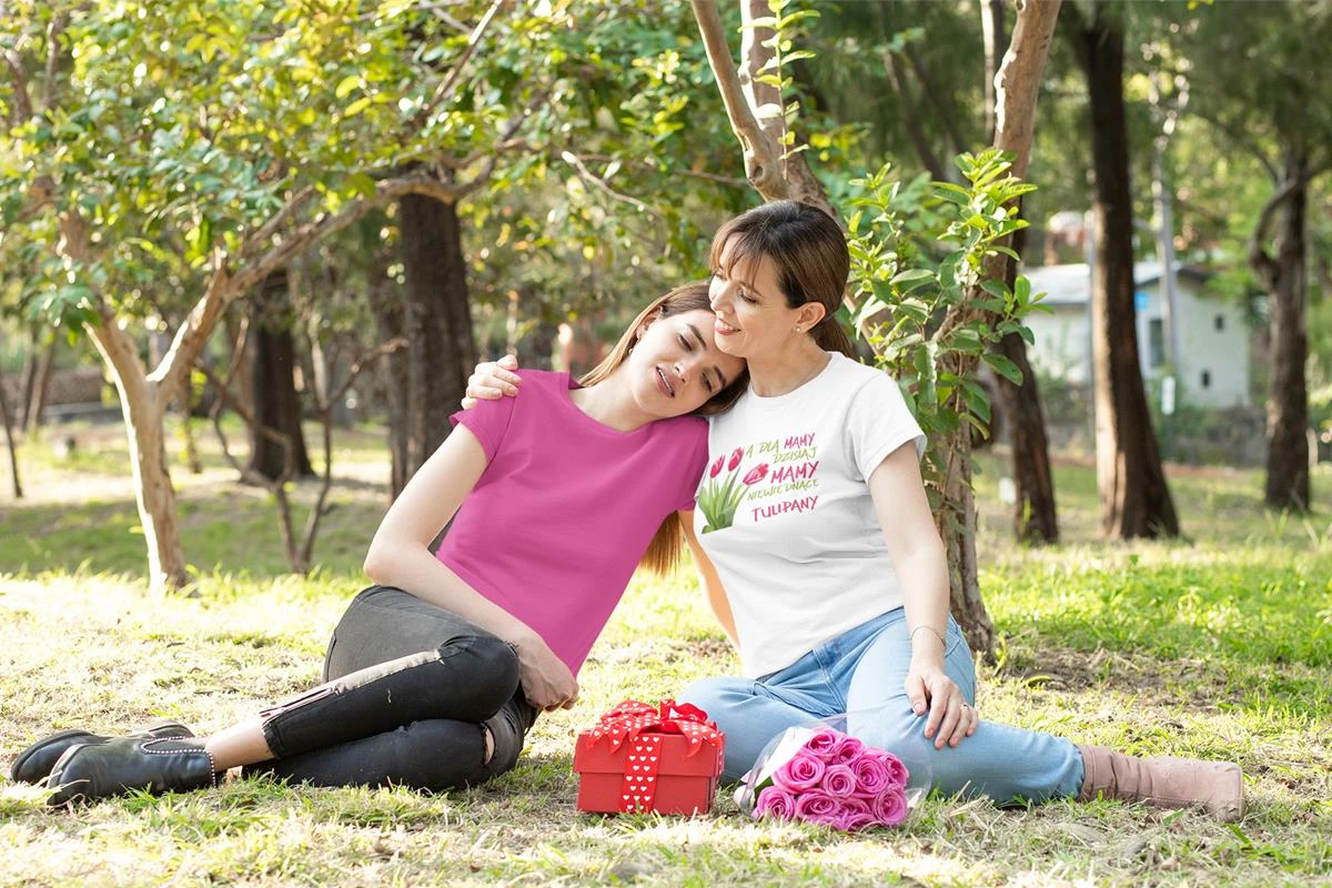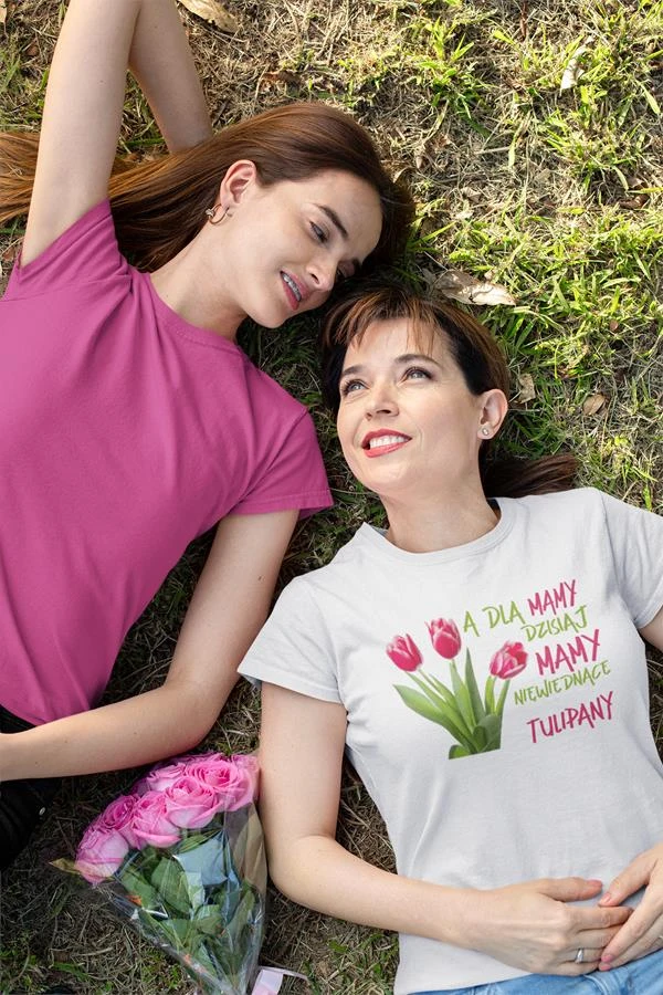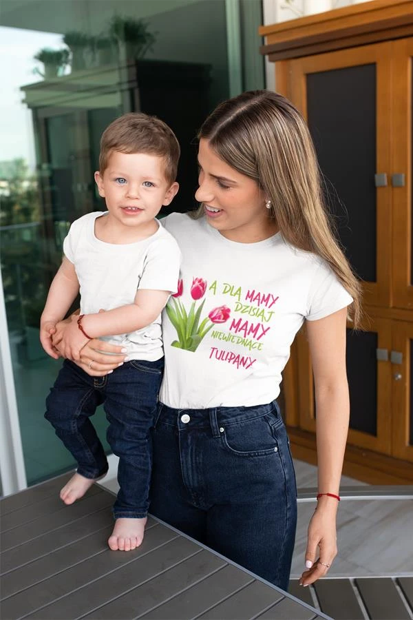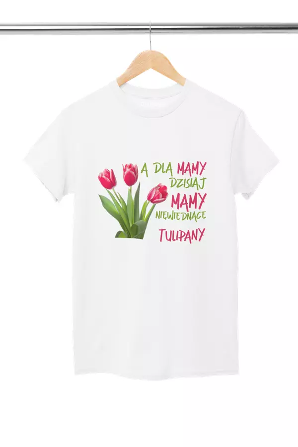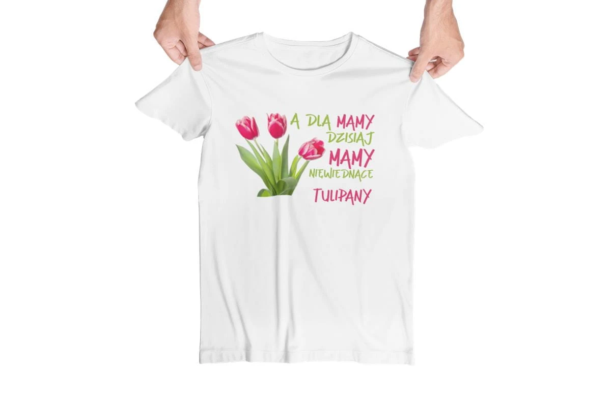 Koszulka z napisem "A dla mamy dzisiaj mamy niewiędnące tulipany"