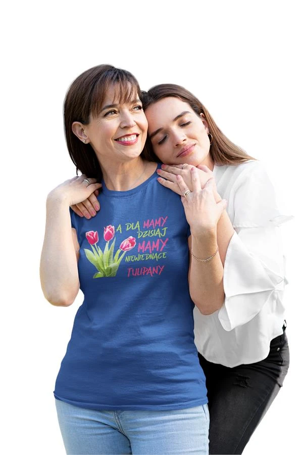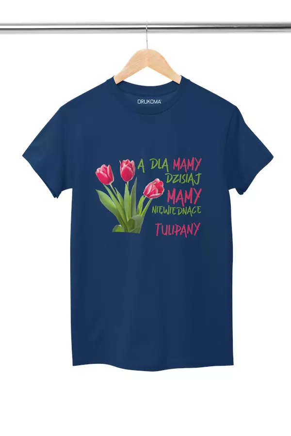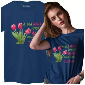 Koszulka dla Mamy na Dzień Mamy z nadrukiem A dla mamy dzisiaj mamy niewiędnące tulipany kolor granatowy