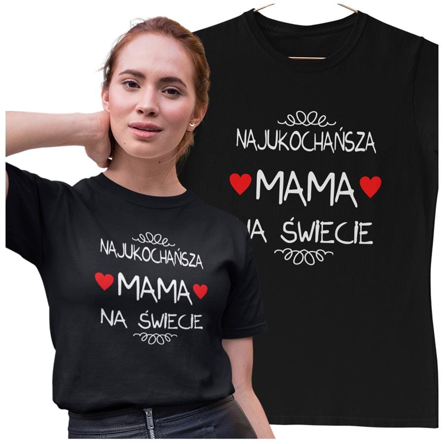 Koszulka dla Mamy na Dzień Mamy z nadrukiem Najukochańsza mama na świecie kolor czarny