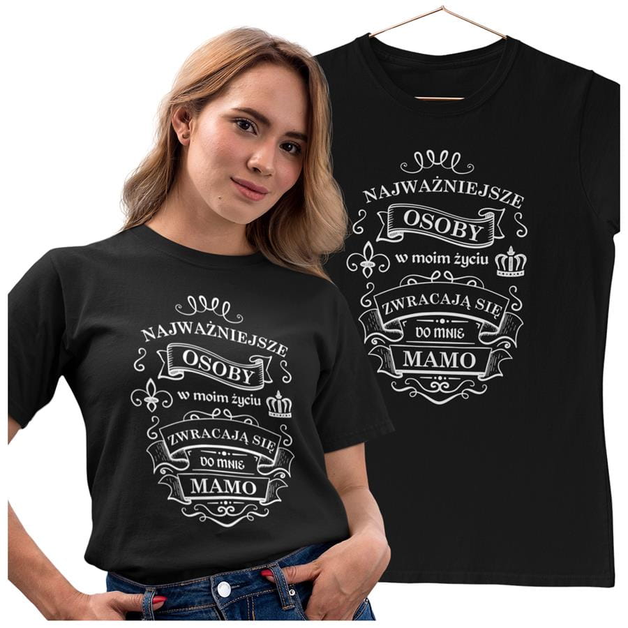 Koszulka dla Mamy na Dzień Mamy z nadrukiem Najważniejsze osoby w moim życiu zwracają się do mnie MAMO kolor czarny
