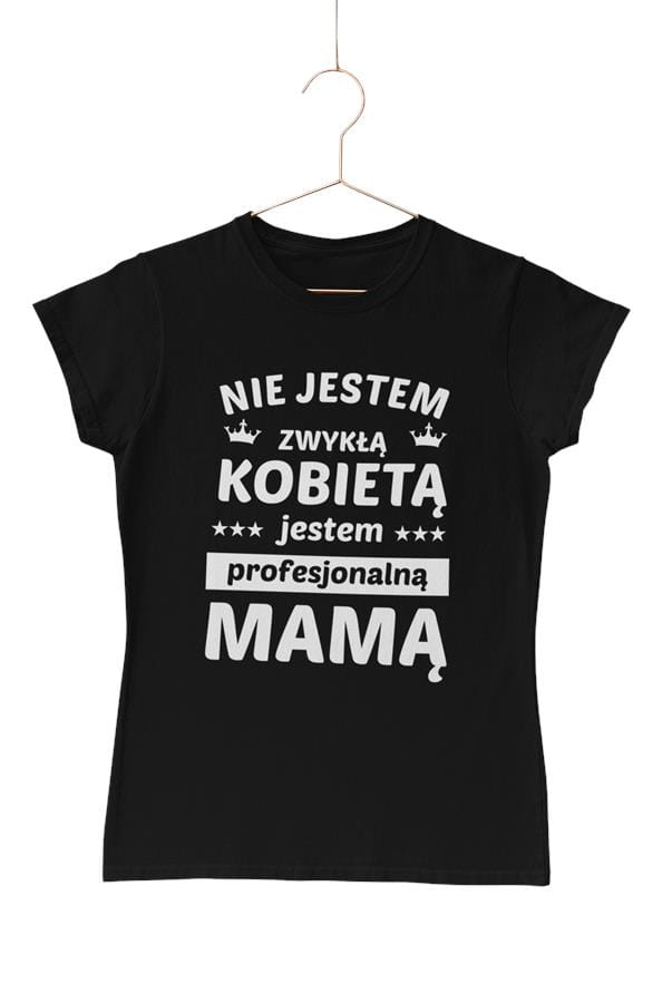 Koszulka dla Mamy na Dzień Mamy z nadrukiem Nie jestem zwykłą kobietą jestem profesjonalną mamą kolor czarny