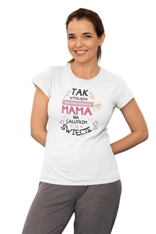 Koszulka z napisem "Tak wygląda najcudowniejsza mama na calutkim świecie"