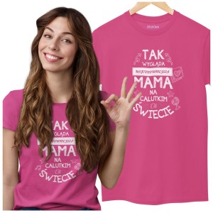 Koszulka dla Mamy na Dzień Mamy z nadrukiem Tak wygląda najcudowniejsza mama na calutkim świecie kolor różowy