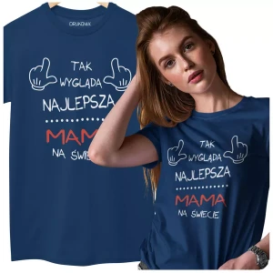 Koszulka dla Mamy na Dzień Mamy z nadrukiem Tak wygląda najlepsza mama na świecie kolor granatowy