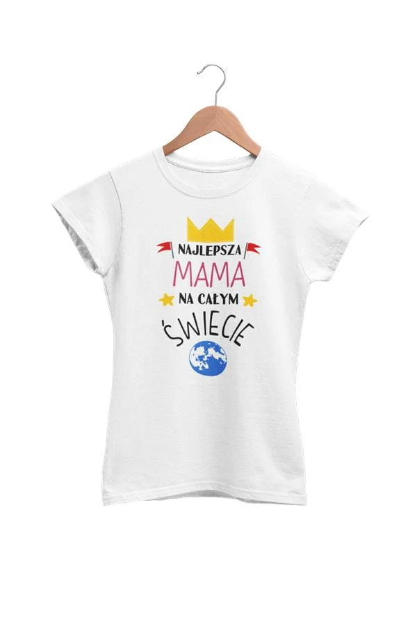 Koszulka dla Mamy na Dzień Mamy z nadrukiem najlepsza mama na całym świecie kolor biały