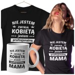 Koszulka dla Mamy na Dzień Mamy zestaw z kubkiem i nadrukiem Nie jestem zwykłą kobietą jestem profesjonalną mamą kolor czarny