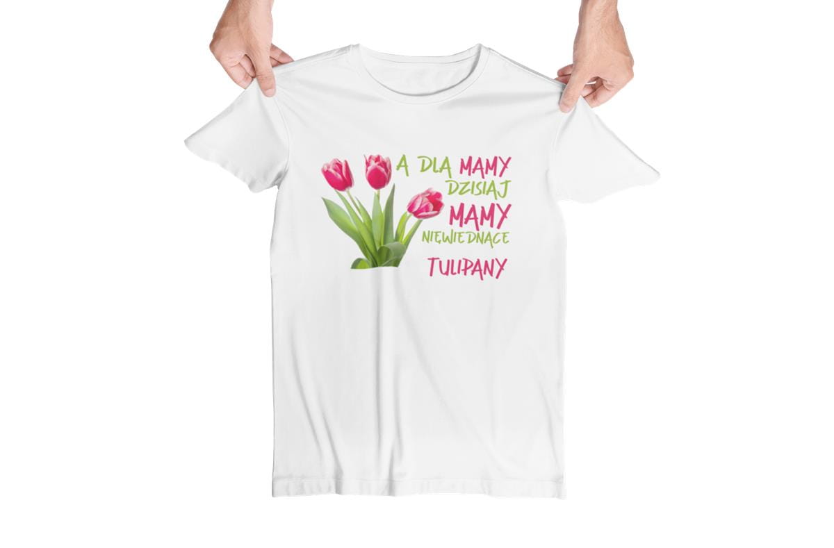 Koszulka z napisem "A dla mamy dzisiaj mamy niewiędnące tulipany"