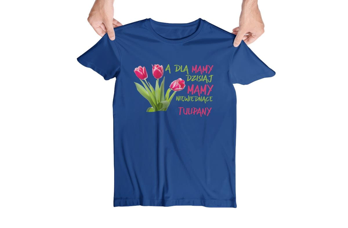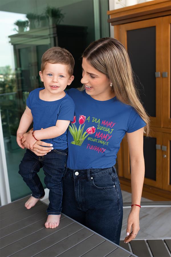 Koszulka z napisem "A dla mamy dzisiaj mamy niewiędnące tulipany"