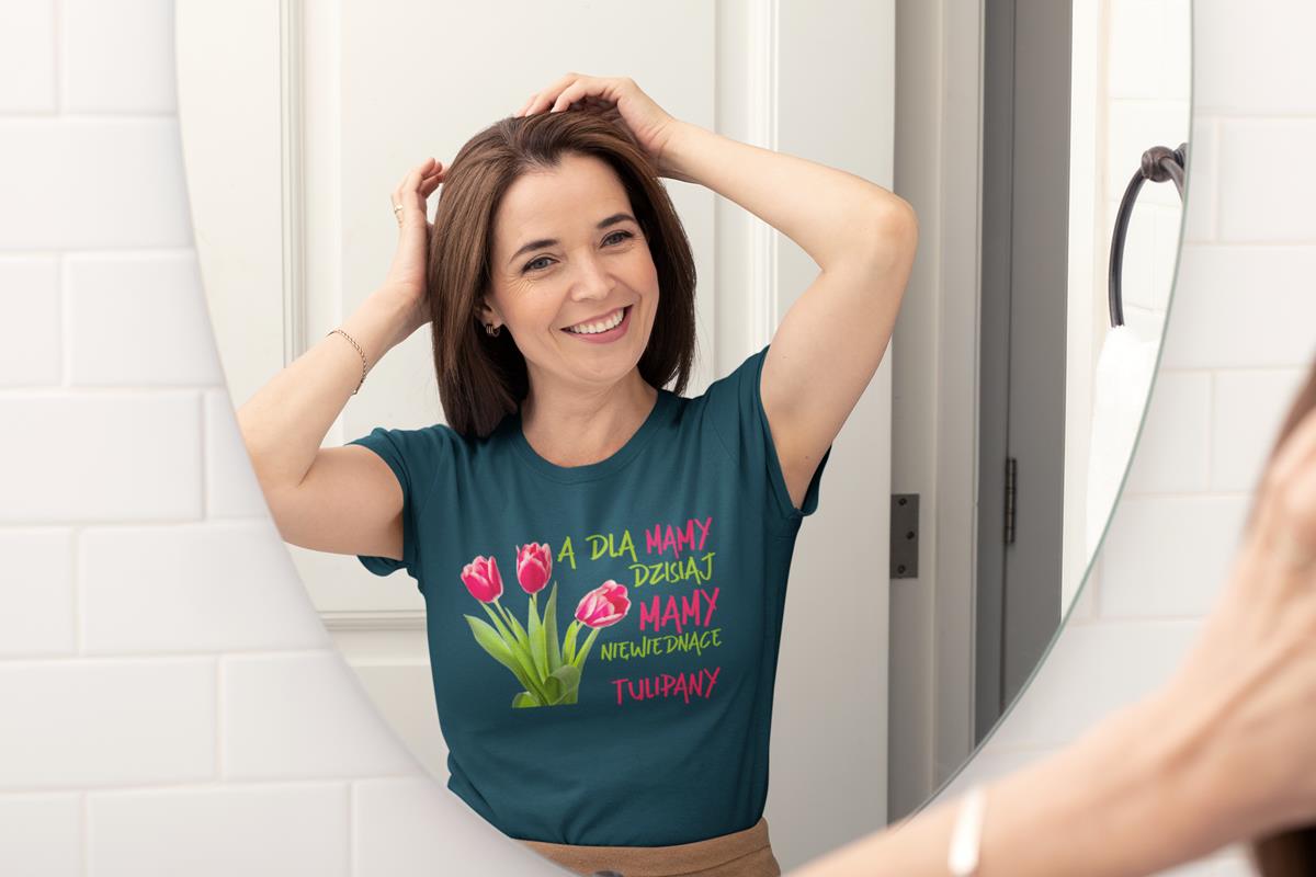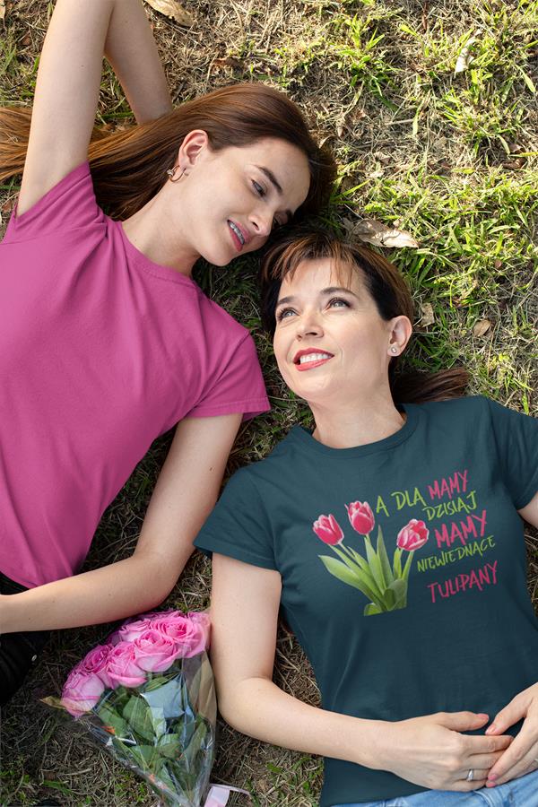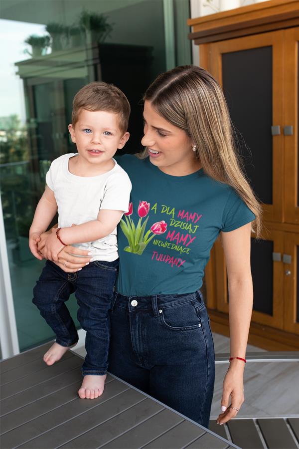 Koszulka z napisem "A dla mamy dzisiaj mamy niewiędnące tulipany"