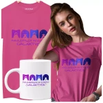 Koszulka dla Mamy na Dzień Mamy zestaw z kubkiem z nadrukiem MAMA najlepsza w całej galaktyce kolor różowy