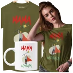 Koszulka dla Mamy na Dzień Mamy zestaw z kubkiem z nadrukiem mama wymiata kolor KHAKI