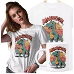 Koszulka dla Mamy na Dzień Mamy zestaw z kubkiem z napisem "MAMOZAUR" kolor biały