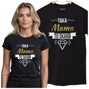 Koszulka dla Mamy na Dzień Matki z napisem Taka mama to skarb w kolorze czarnym
