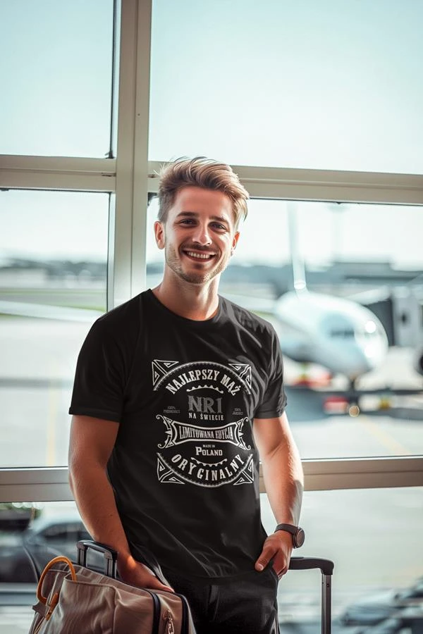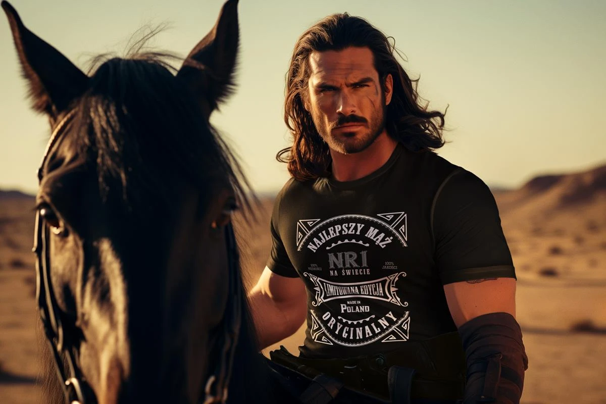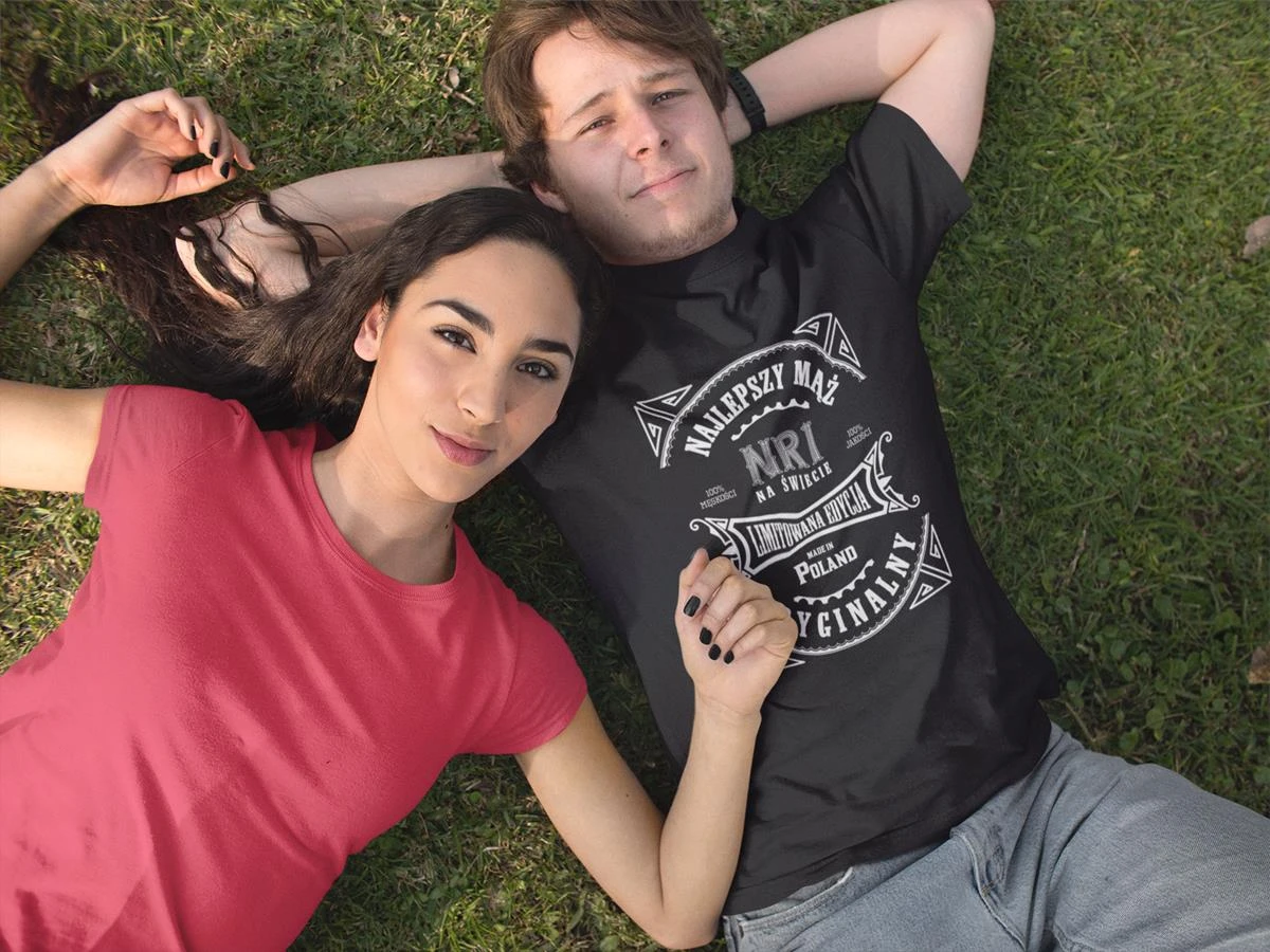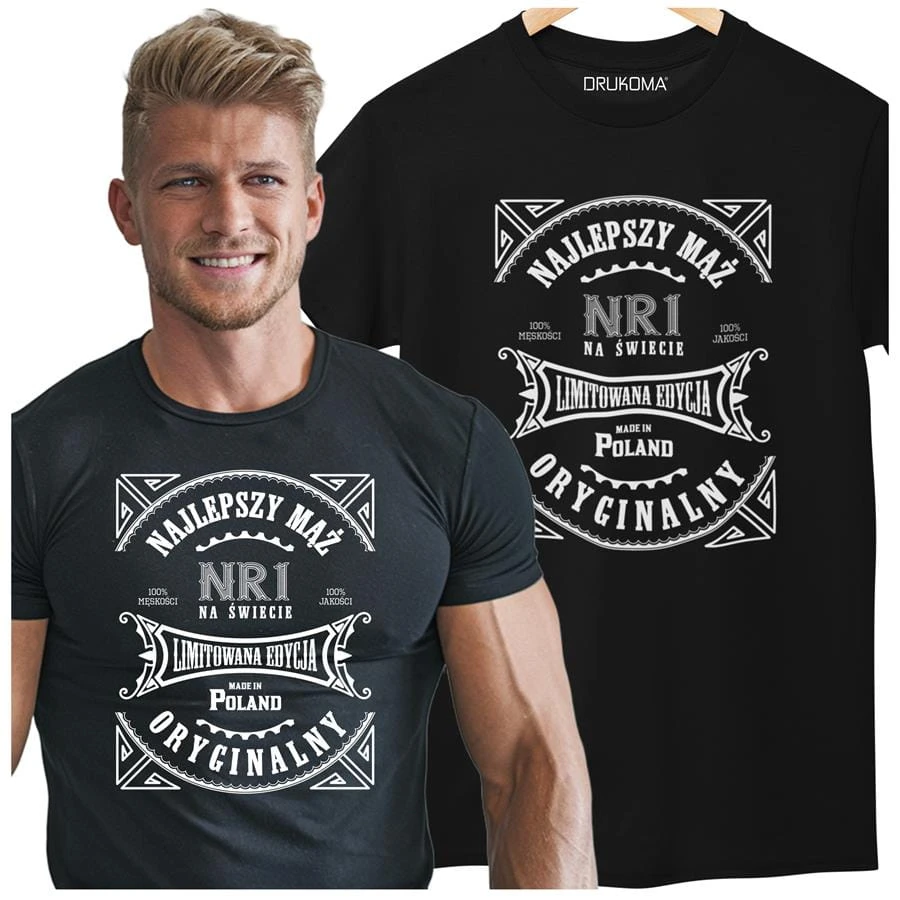 Koszulka dla Męża modny prezent na Walentynki lub Urodziny stylowa koszulka z napisem "Najlepszy mąż nr1 na świecie limitowana edycja made in Poland oryginalny 100% męskości 100% jakości"