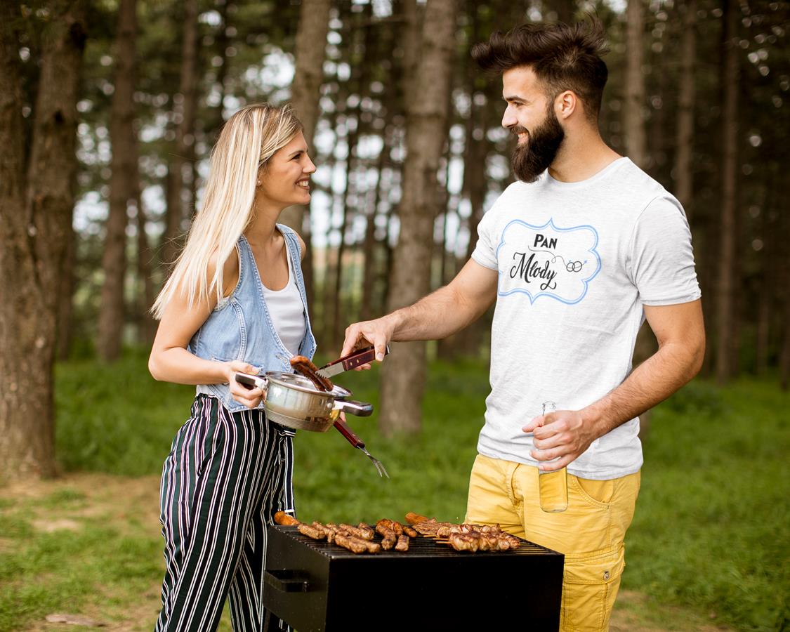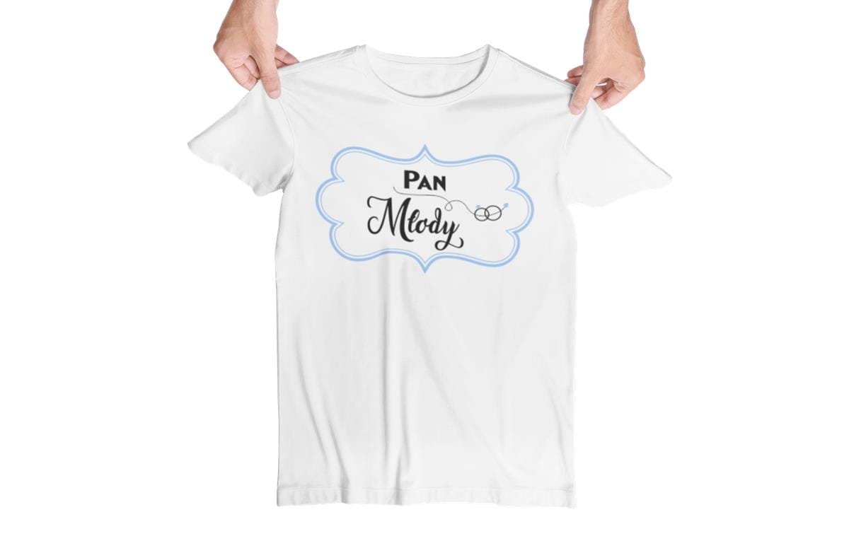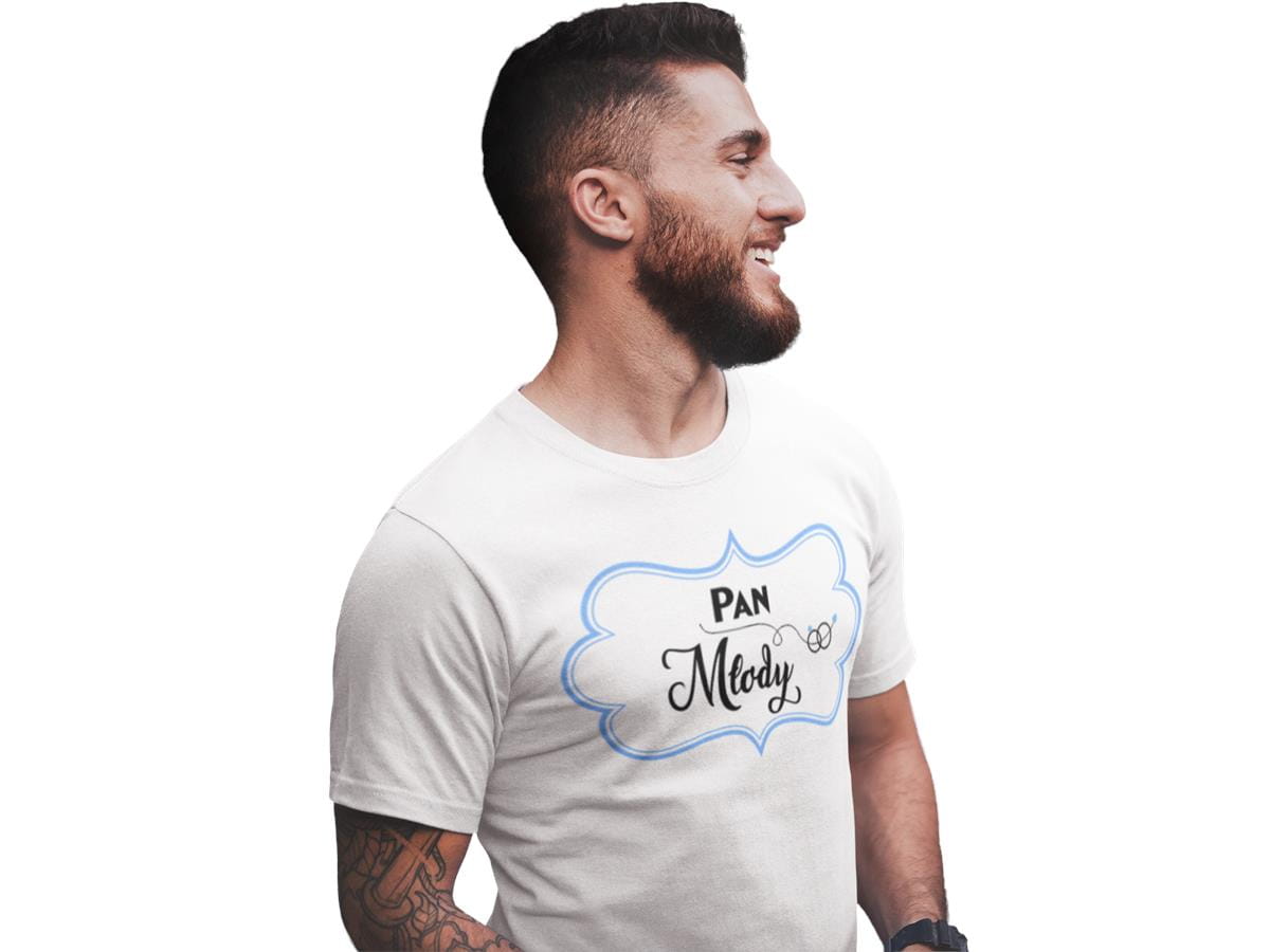 Koszulka dla PANA MŁODEGO na wieczór kawalerski modny prezent dla przyszłej Pary Młodej Stylowa koszulka z napisem: "Pan Młody" w kolorze białym