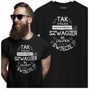 Koszulka dla Szwagra modny prezent na Urodziny stylowa koszulka z napisem "Tak wygląda najcudowniejszy szwagier na calutkim świecie" w kolorze czarnym