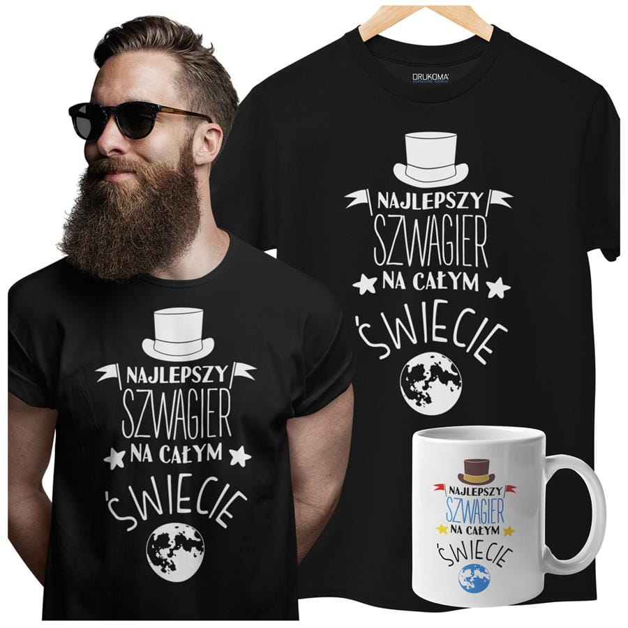 Koszulka dla Szwagra w zestawie z kubkiem z nadrukiem "Najlepszy Szwagier na całym świecie" w kolorze czarny