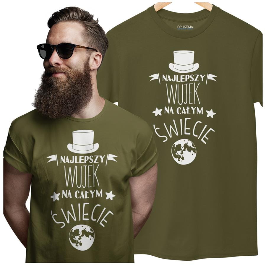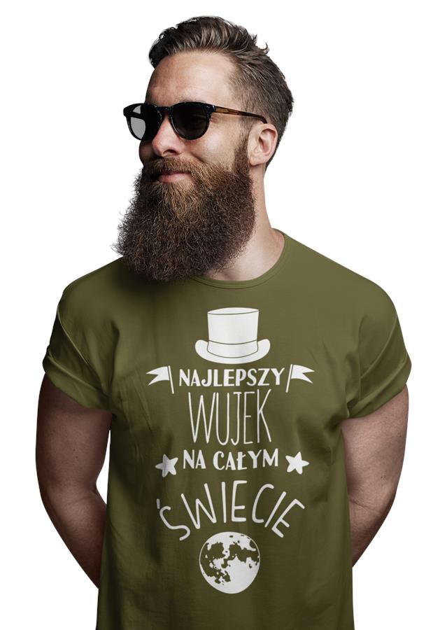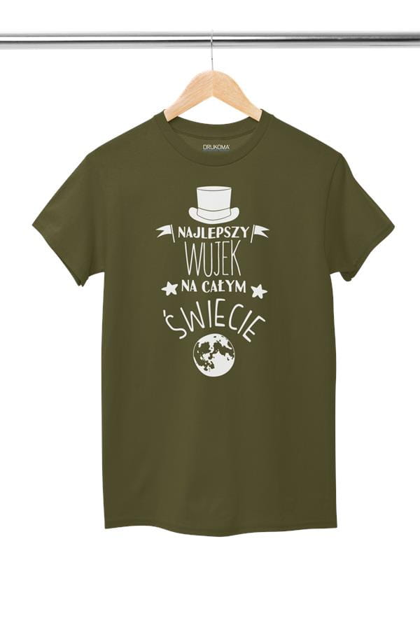 Koszulka dla Wujka modny prezent na Urodziny stylowa koszulka z napisem "Najlepszy Wujek na całym świecie" w kolorze khaki