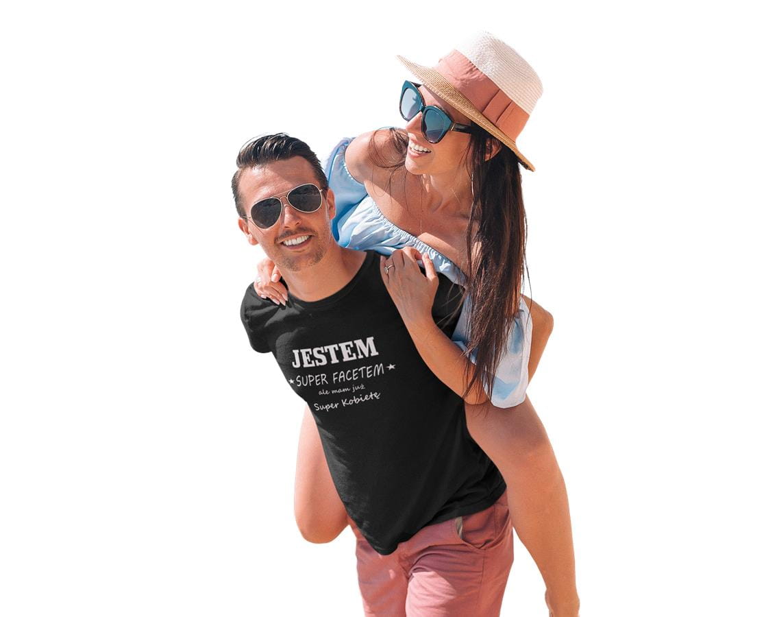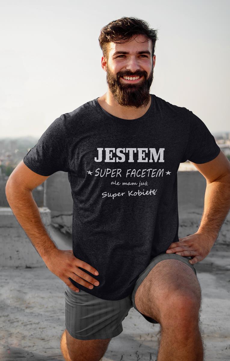 Koszulka dla chłopaka męża na walentynki z napisem Jestem super facetem ale mam już super kobietę