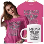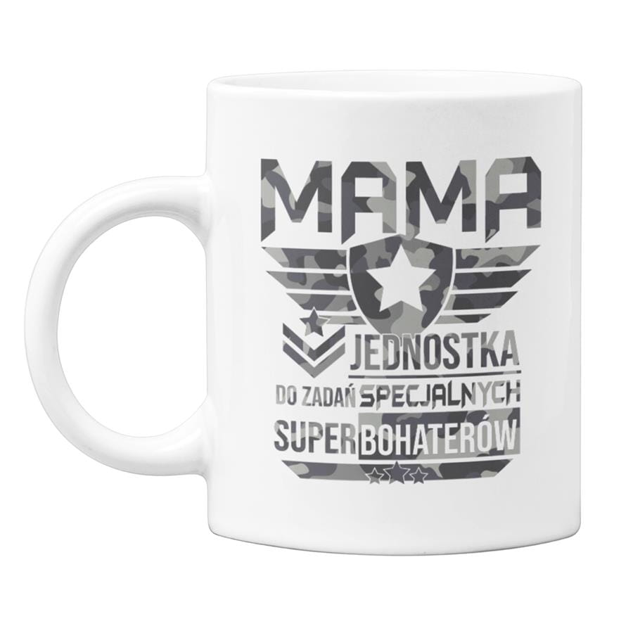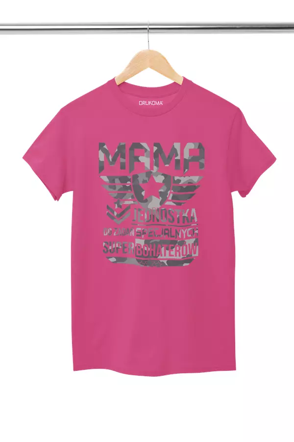 Koszulka dla mamy wraz z kubkiem Z KOLOROWYM NADRUKIEM Mama jednostka do zadań specjalnych super bohaterów KOLOR Różowy
