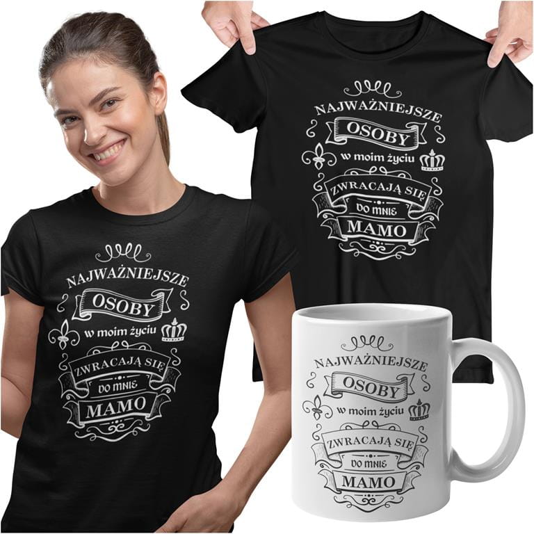 Koszulka dla mamy wraz z kubkiem z nadrukiem Najważniejsze osoby w moim życiu zwracają się do mnie MAMO