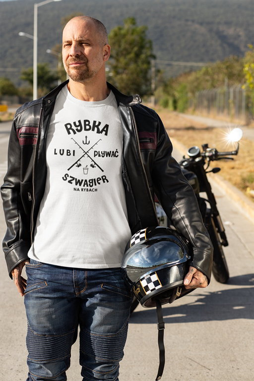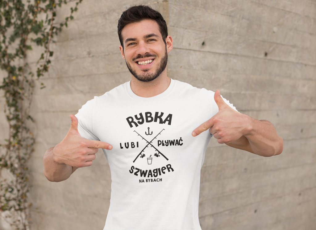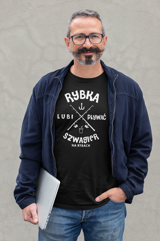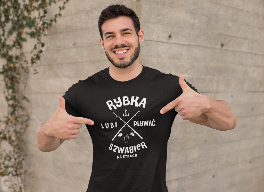 Koszulka dla szwagra na urodziny z napisem Rybka lubi pływać szwagier na rybach