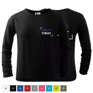 Koszulka dziecięca z długim rękawem 160g Fit-T LS 121 z logo własnym nadrukiem na sercu i plecach odzież reklamowa WSZYSTKIE KOLORY