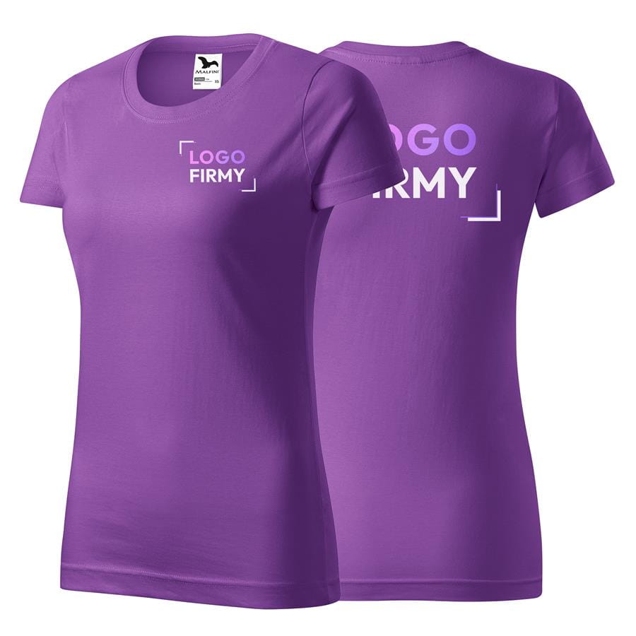 Koszulka fioletowa z krótkim rękawem z logo na sercu i plecach damska z nadrukiem logo firmy 160g BASIC134 kolor 64 koszulka krótki rękaw