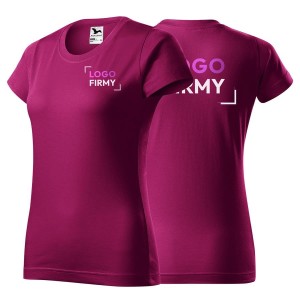 Koszulka fuchsia red z krótkim rękawem z logo na sercu i plecach damska z nadrukiem logo firmy 160g BASIC134 kolor 49 koszulka krótki rękaw