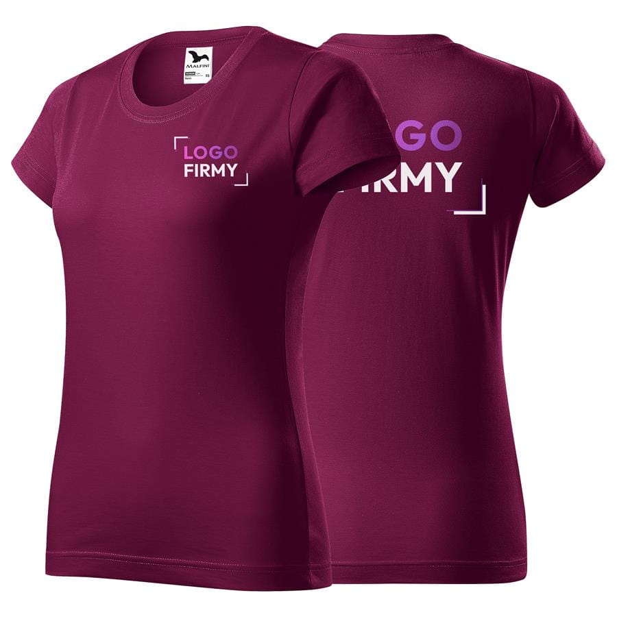 Koszulka fuksjowa z krótkim rękawem z logo na sercu i plecach damska z nadrukiem logo firmy 160g BASIC134 kolor 43 koszulka krótki rękaw