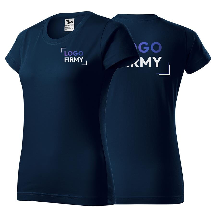 Koszulka granatowa z krótkim rękawem z logo na sercu i plecach damska z nadrukiem logo firmy 160g BASIC134 kolor 02 koszulka krótki rękaw
