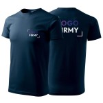 Koszulka granatowa z krótkim rękawem z logo na sercu i plecach męska z nadrukiem logo firmy 160g BASIC129 kolor 02 koszulka krótki rękaw