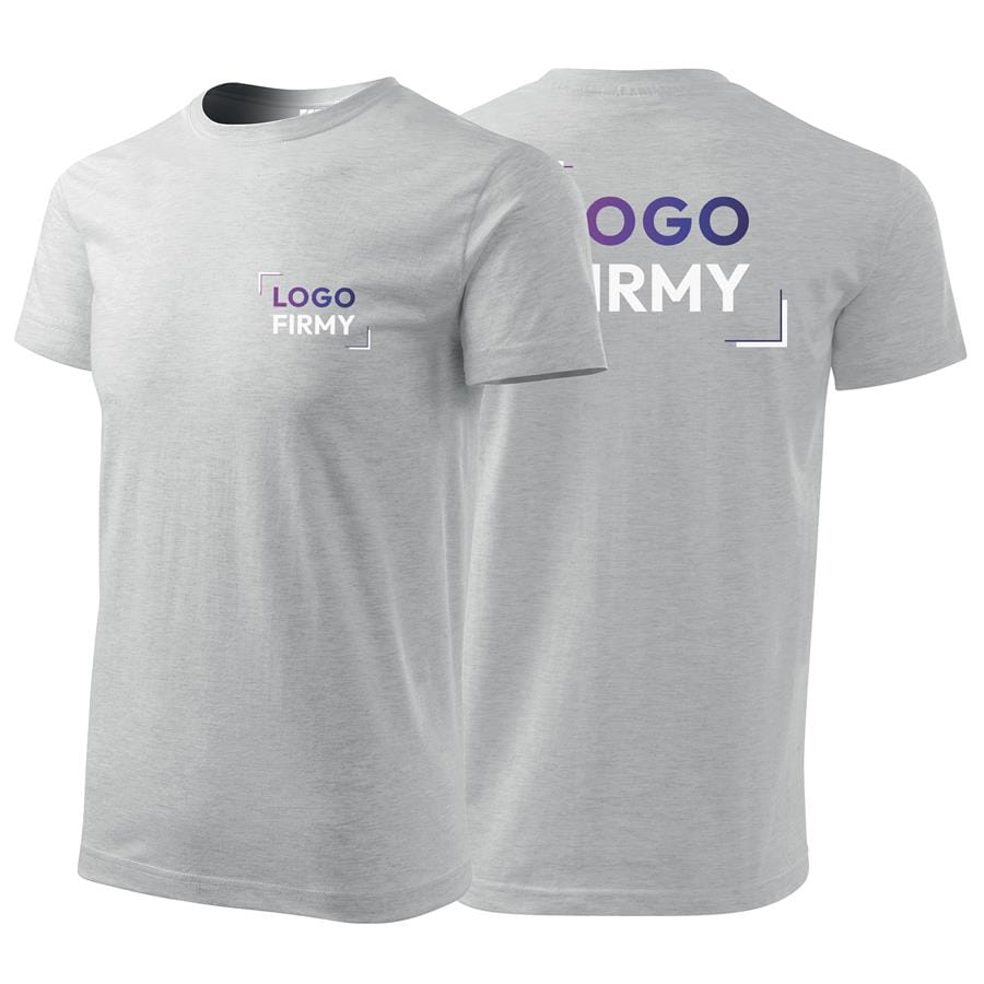 Koszulka jasnoszary melanż z krótkim rękawem z logo na sercu i plecach męska z haftem nadrukiem logo firmy 160g BASIC129 kolor 03 koszulka krótki rękaw