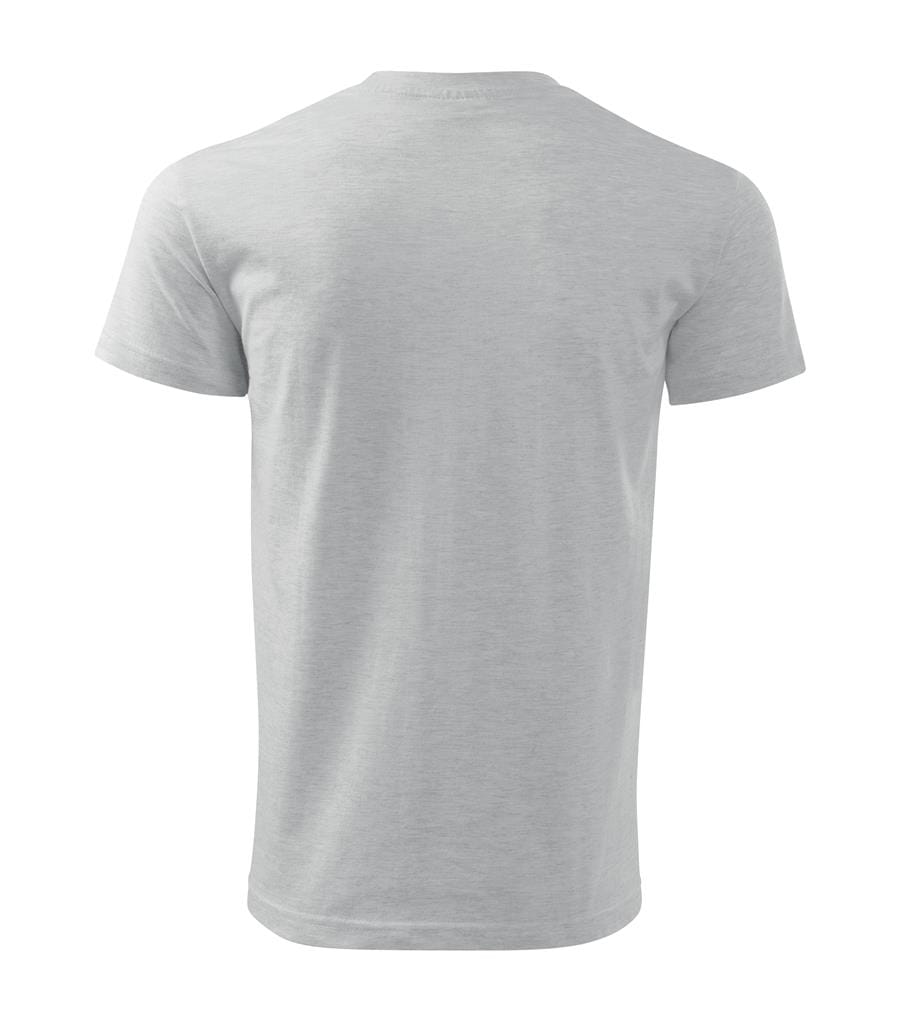 Koszulka męska Basic 129 to klasyczny T-shirt o gramaturze 160 g/m², wykonany w 100% z bawełny (Single Jersey) z wykończeniem silikonowym zapewniającym wyjątkową gładkość i miękkość materiału. Model charakteryzuje się brakiem szwów bocznych, wąską lamówką przy dekolcie z dodatkiem 5% elastanu oraz taśmą wzmacniającą na ramionach, co gwarantuje trwałość i wysoki komfort noszenia. Wyposażona w satynową metkę, idealnie nadaje się pod profesjonalne znakowanie: druk cyfrowy, haft, sitodruk, transfer oraz lithotransfer.