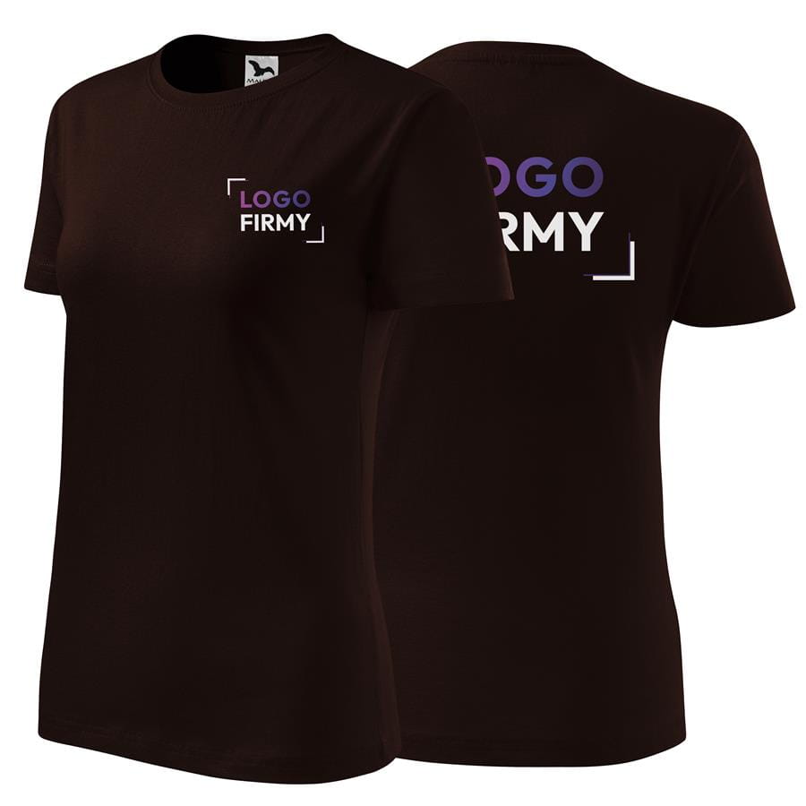 Koszulka kawowa z krótkim rękawem z logo na sercu i plecach damska z nadrukiem logo firmy 160g BASIC134 kolor 27 koszulka krótki rękaw