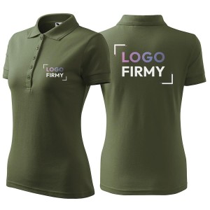 Koszulka khaki polo z logo na sercu i plecach damska z nadrukiem logo firmy 200g 210 kolor 09 koszulka polo