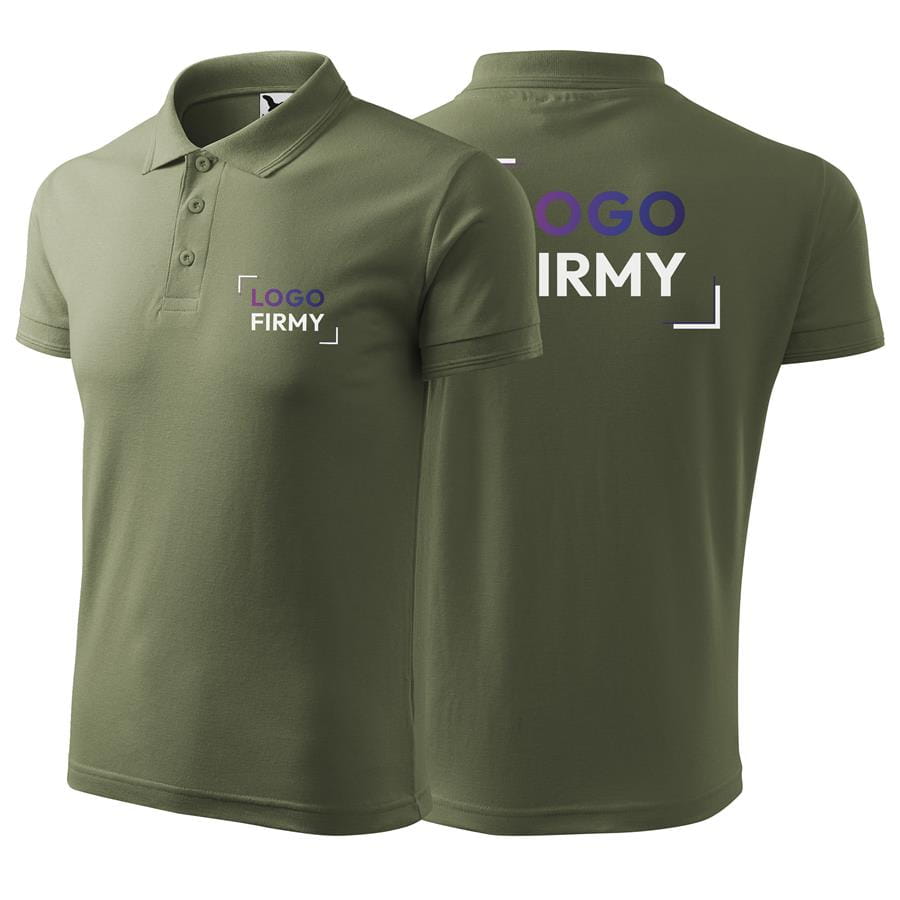 Koszulka khaki polo z logo na sercu i plecach męska z nadrukiem logo firmy 200g 203 kolor 09 koszulka polo