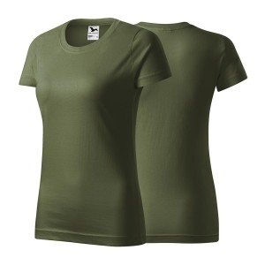 Koszulka khaki z krótkim rękawem z logo na sercu damska z nadrukiem logo firmy 160g BASIC134 kolor 09 koszulka krótki rękaw