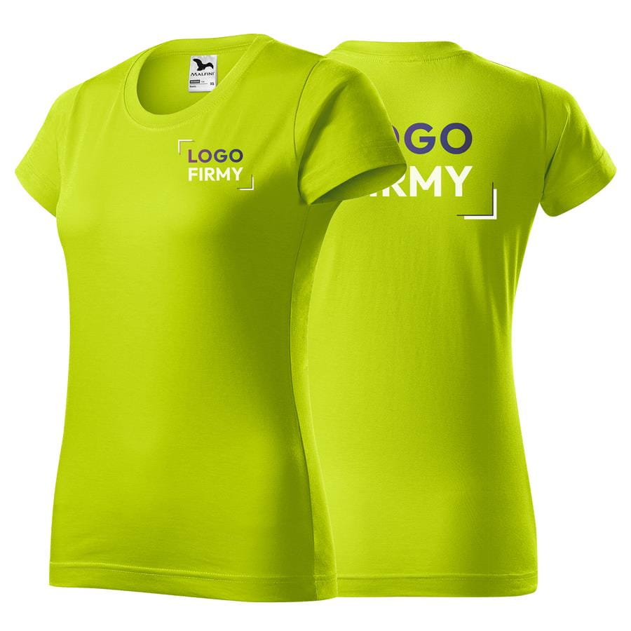 Koszulka limetka z krótkim rękawem z logo na sercu i plecach damska z nadrukiem logo firmy 160g BASIC134 kolor 62 koszulka krótki rękaw