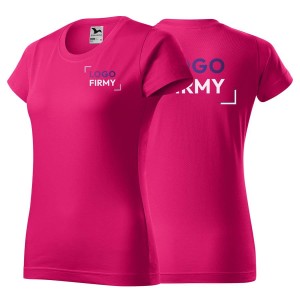 Koszulka malinowa z krótkim rękawem z logo na sercu i plecach damska z nadrukiem logo firmy 160g BASIC134 kolor 63 koszulka krótki rękaw