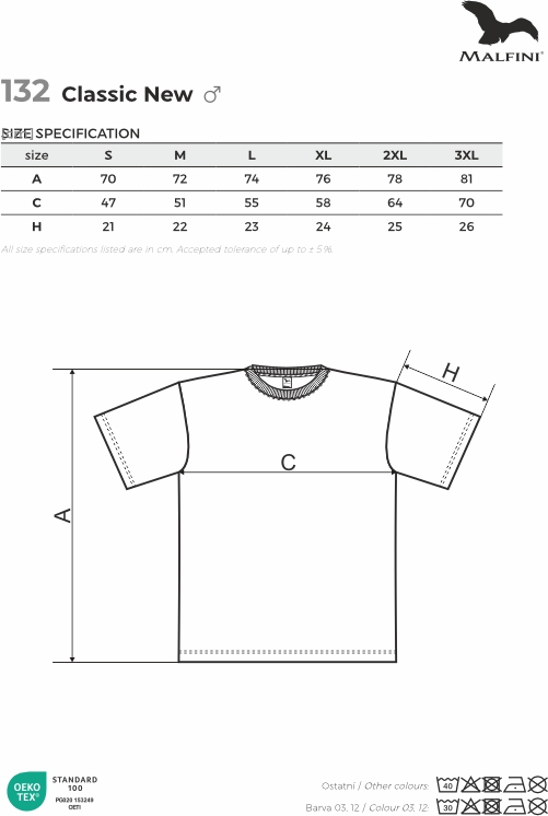 Koszulka męska Classic New 132 to lekki T-shirt o gramaturze 145 g/m², wykonany w 100% z bawełny (Single Jersey), który dzięki konstrukcji bez szwów bocznych zapewnia wysoki komfort użytkowania i swobodę ruchów. Model posiada wąską lamówkę z dzianiny ściągaczowej 1:1, szew wzmacniający na ramionach oraz lamówkę na karku wzmocnioną taśmą z materiału wierzchniego, co gwarantuje trwałość i stabilność kształtu. Wyposażona w satynową metkę, koszulka stanowi idealną bazę pod profesjonalne znakowanie: druk cyfrowy, sitodruk, transfer cyfrowy oraz lithotransfer.