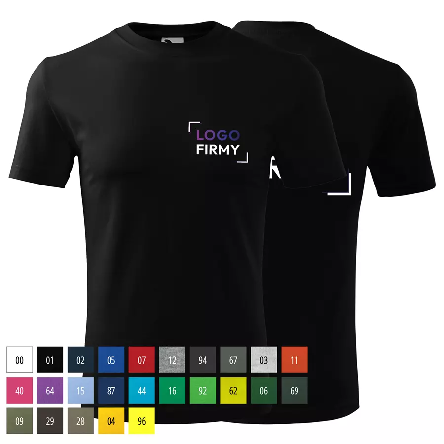 Koszulka męska 145g Classic New 132 z logo własnym nadrukiem na sercu i plecach odzież reklamowa WSZYSTKIE KOLORY